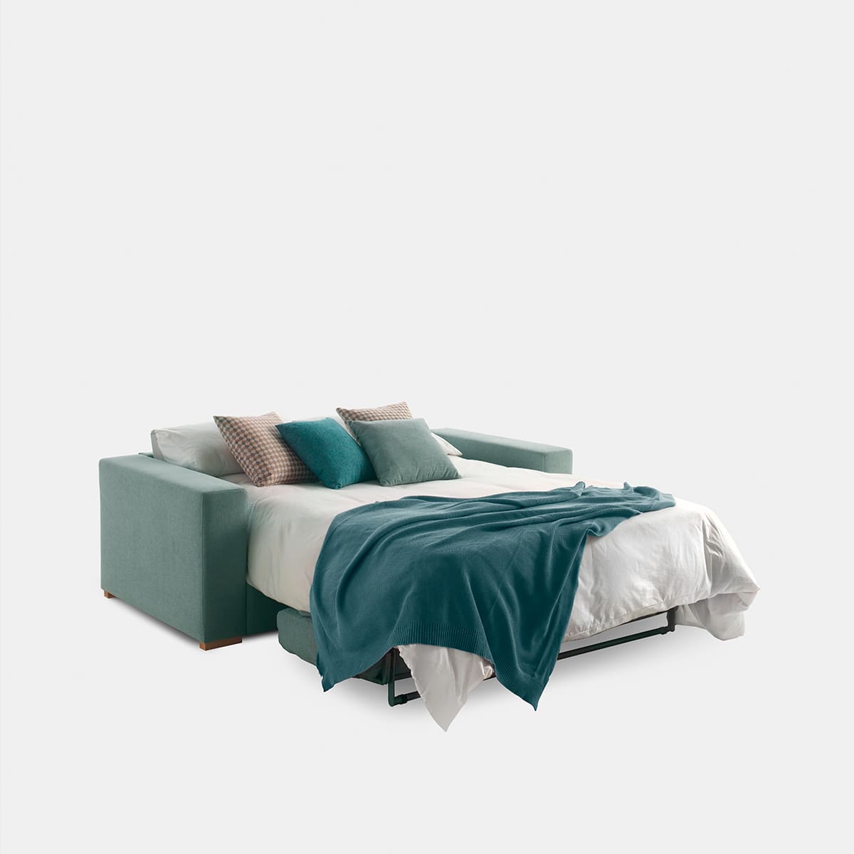 El sofá dispone de una apertura de rotación que permite que salga una cama sin tener que quitar los cojines de asiento o respaldo.